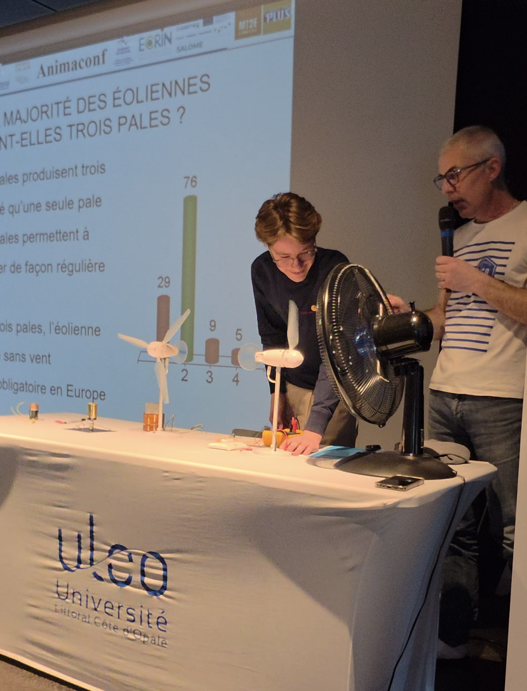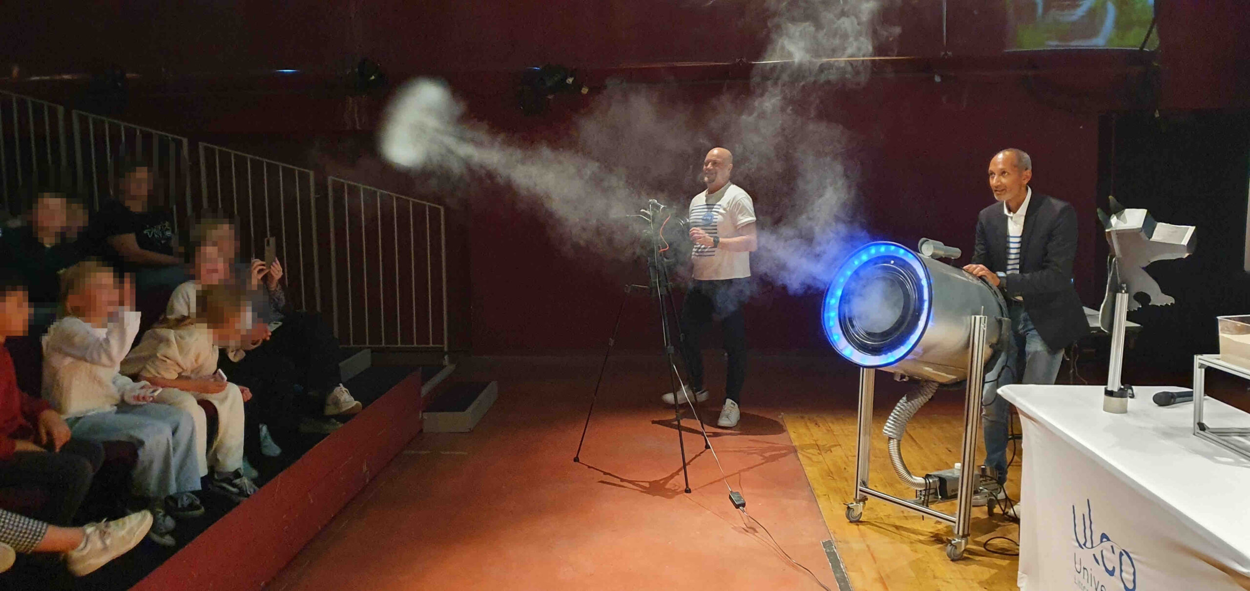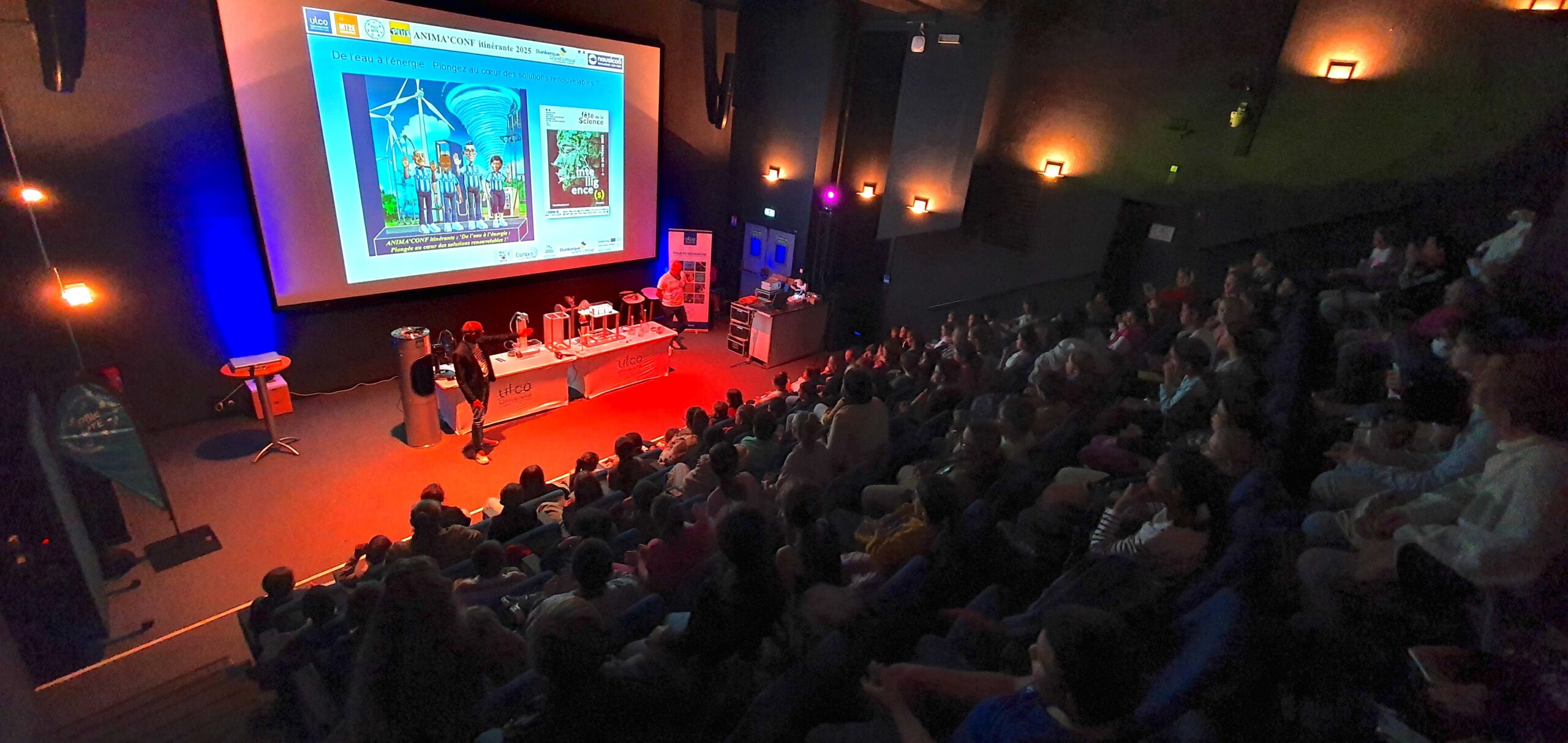 Au cours de cette Animaconf, les chercheurs de l’ULCO ont fait leur show dans le planétarium du Palais de l’Univers et des Sciences de Cappelle-La-Grande, en proposant un quiz géant, illustré par de nombreuses expériences scientifiques spectaculaires dédié aux élèves d’un collège.